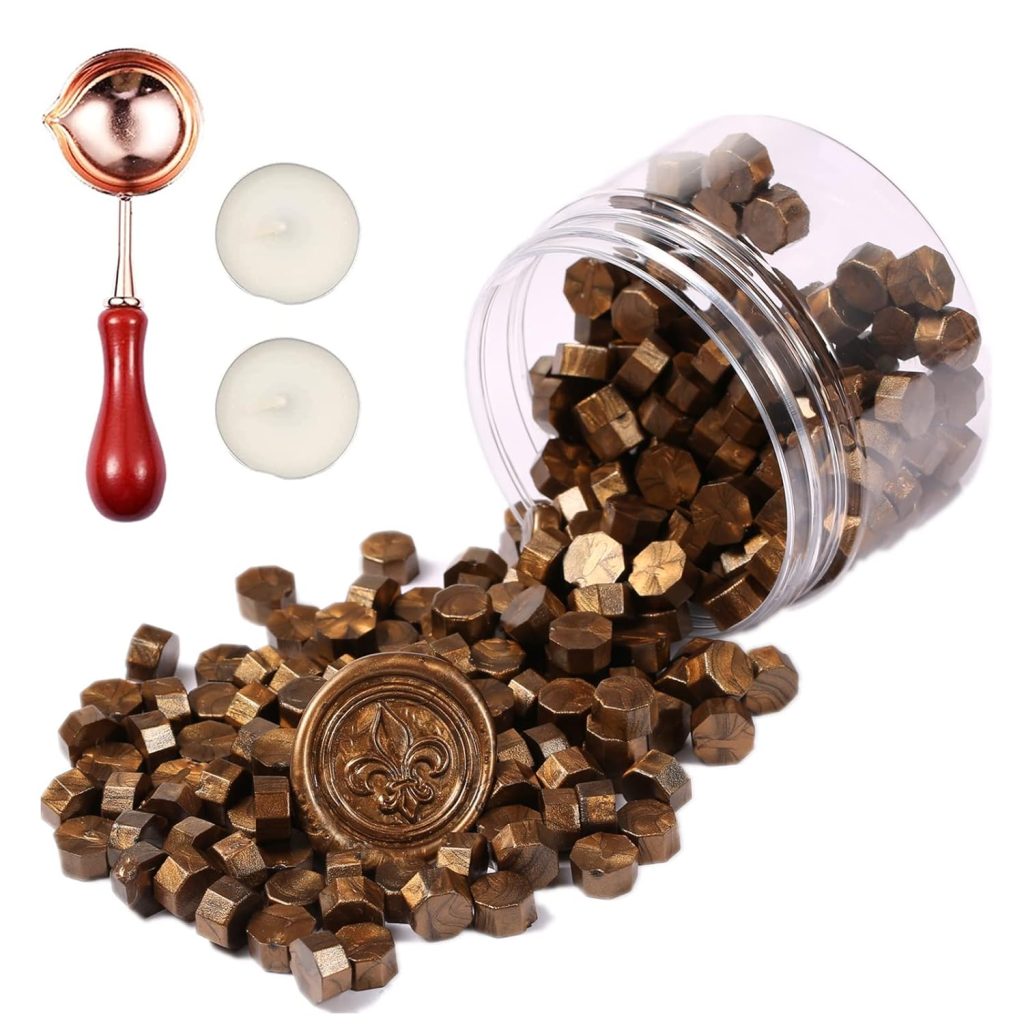 - un ensemble pour cacheter les lettres (cire, cachet personnalisé “Leïa”, etc.),